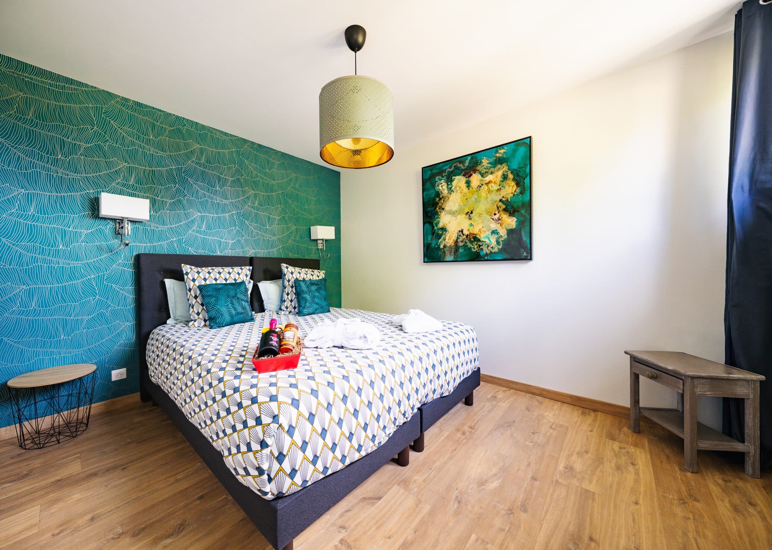 Les six suites sont toutes climatisées et équipées d’une literie haut de gamme. Certains lits king-size (180*200) sont séparables en 2 lits singles pour plus de modularité. Chaque suite dispose de sa propre salle d’eau avec sèche-cheveux et articles de toilette.